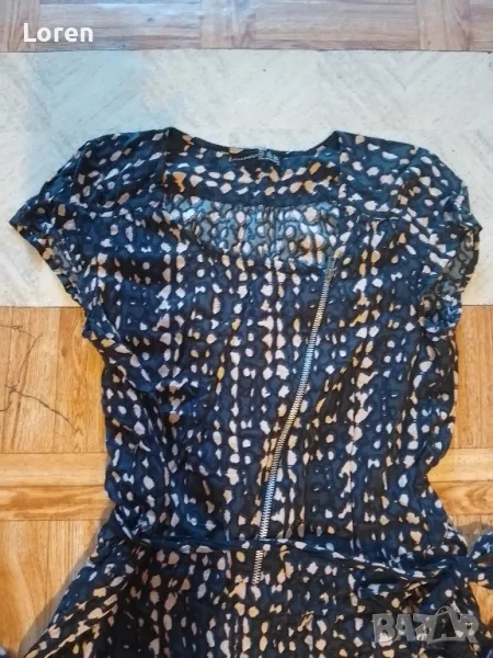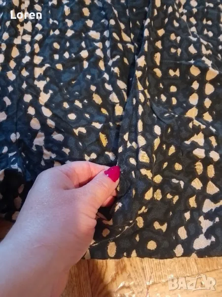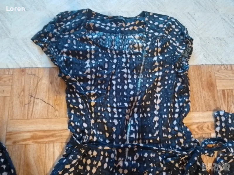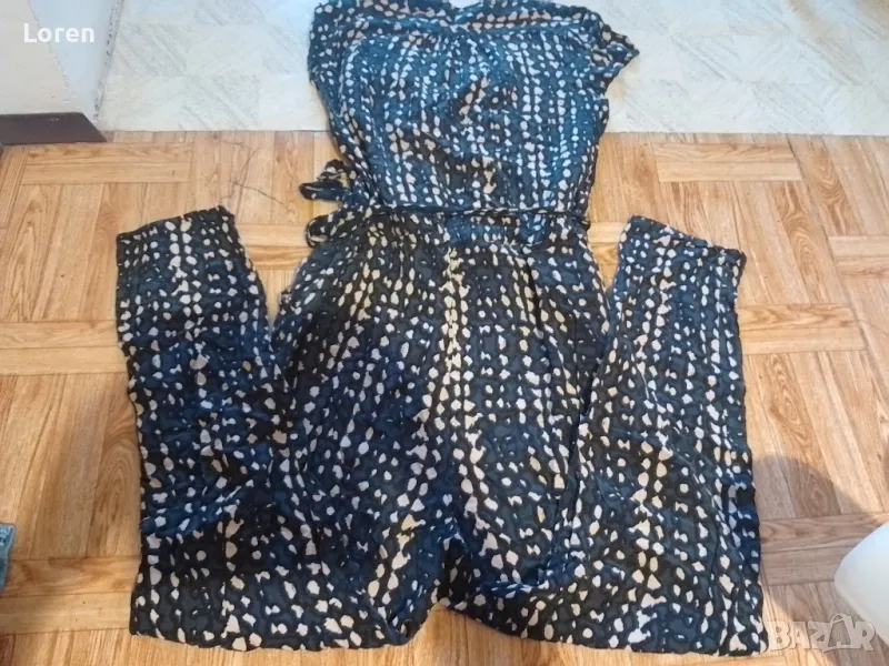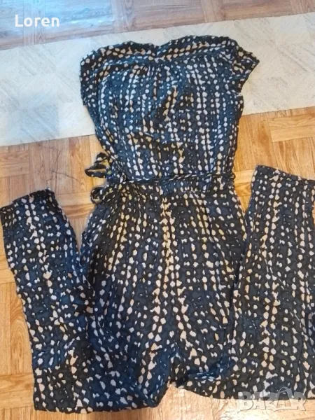 На две места има забележка:едното местенце през което минава коланчето е скъсано отдолу трябва да се зашие и готово,и на едното крачолче има една дупчица показала съм на снимката...не са видими забележките