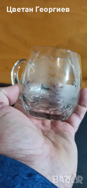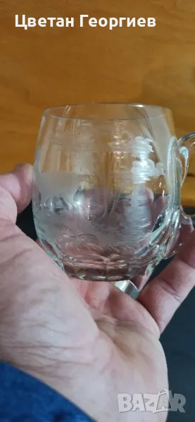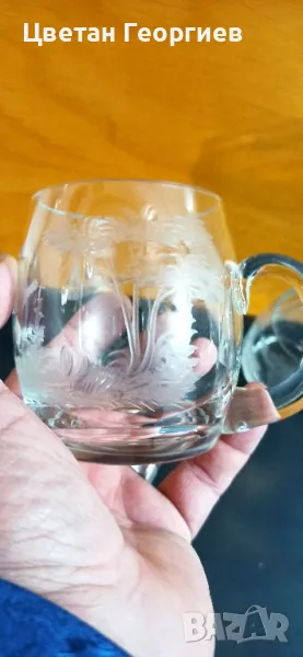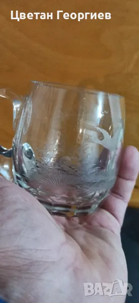 стари ръчно гравирани кристални чаши с дръжка ( тип халба)