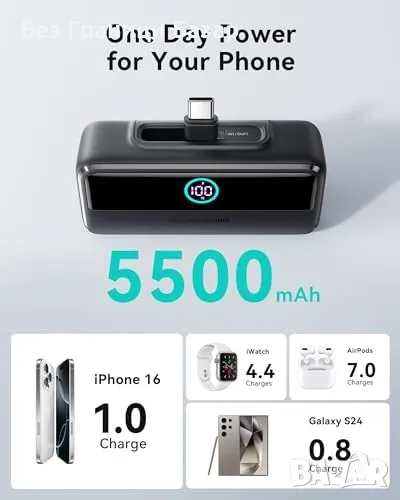 Нов Компактен 22.5W Power Bank с Вграден USB-C Конектор Външна батерия