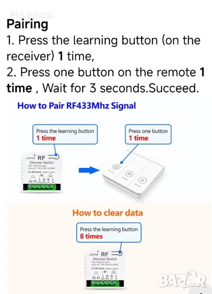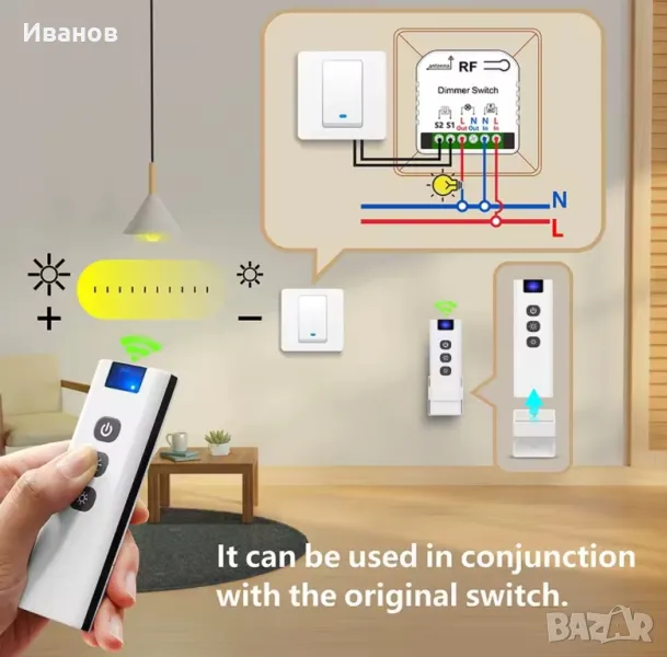 Димируем switch модул+Безжично дистанционо, Димируем. Wireless remote, dimmer switch