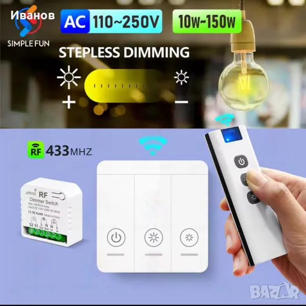 Димируем switch модул+Безжично дистанционо, Димируем. Wireless remote, dimmer switch → Обява 49533554