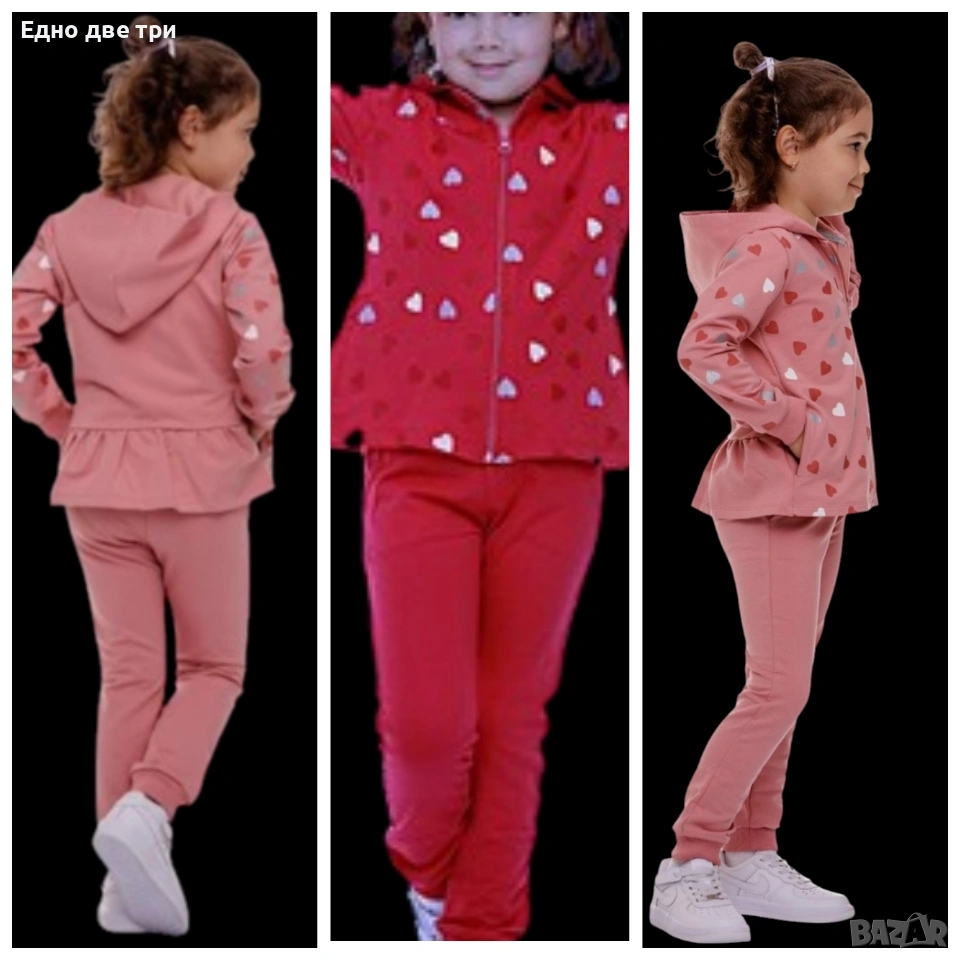 Два модела Детски комплекти Българско производство Севтекс.Цвят пепел от рози и малина. Размер 134 см. Като нови. !Цена за 1 брой екип 23 €