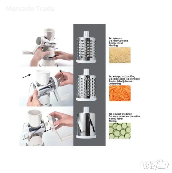 Мултифункционално ренде Mercado Trade, За храни, 3 приставки, Бял