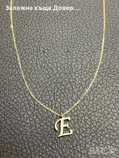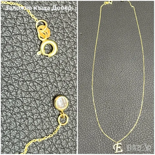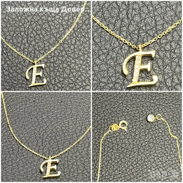 Нежно синджирче с буква “Е” инкрустирана с шест кристала от висок клас.Камък вграден в закопчалката Синджирът е с печати изработен от злато с проба 585. Перфектно състояние.Неразличимот нов! Никакви забележки по синджира. Почистен и полиран в професионално златарско ателие и покрива всички изисквания за чисто ново изделие.