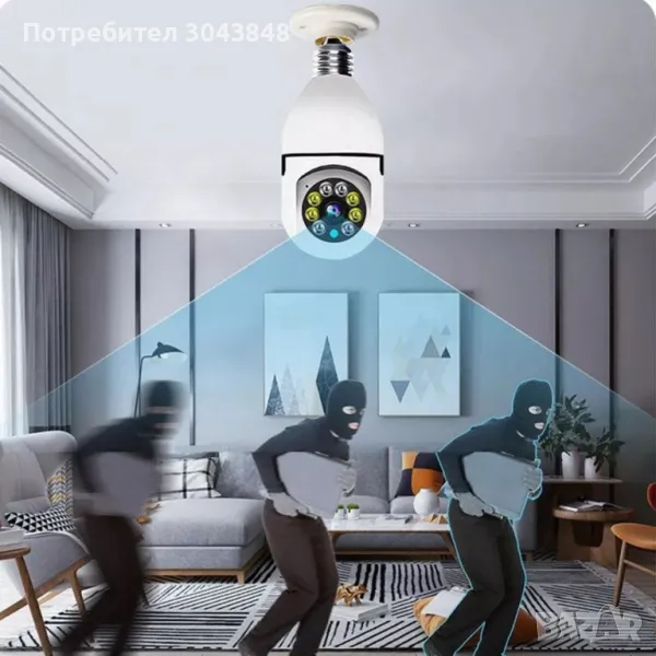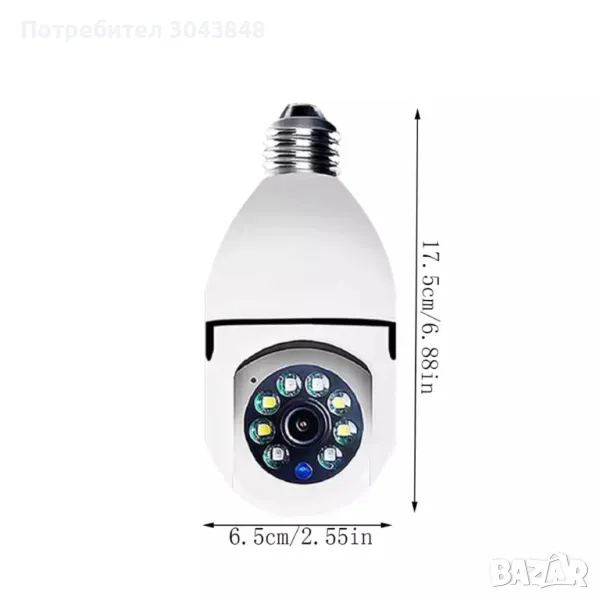 камера във формата на крушка, която се захранва от цокъла на крушката E27 и използва Wi-Fi мрежа.