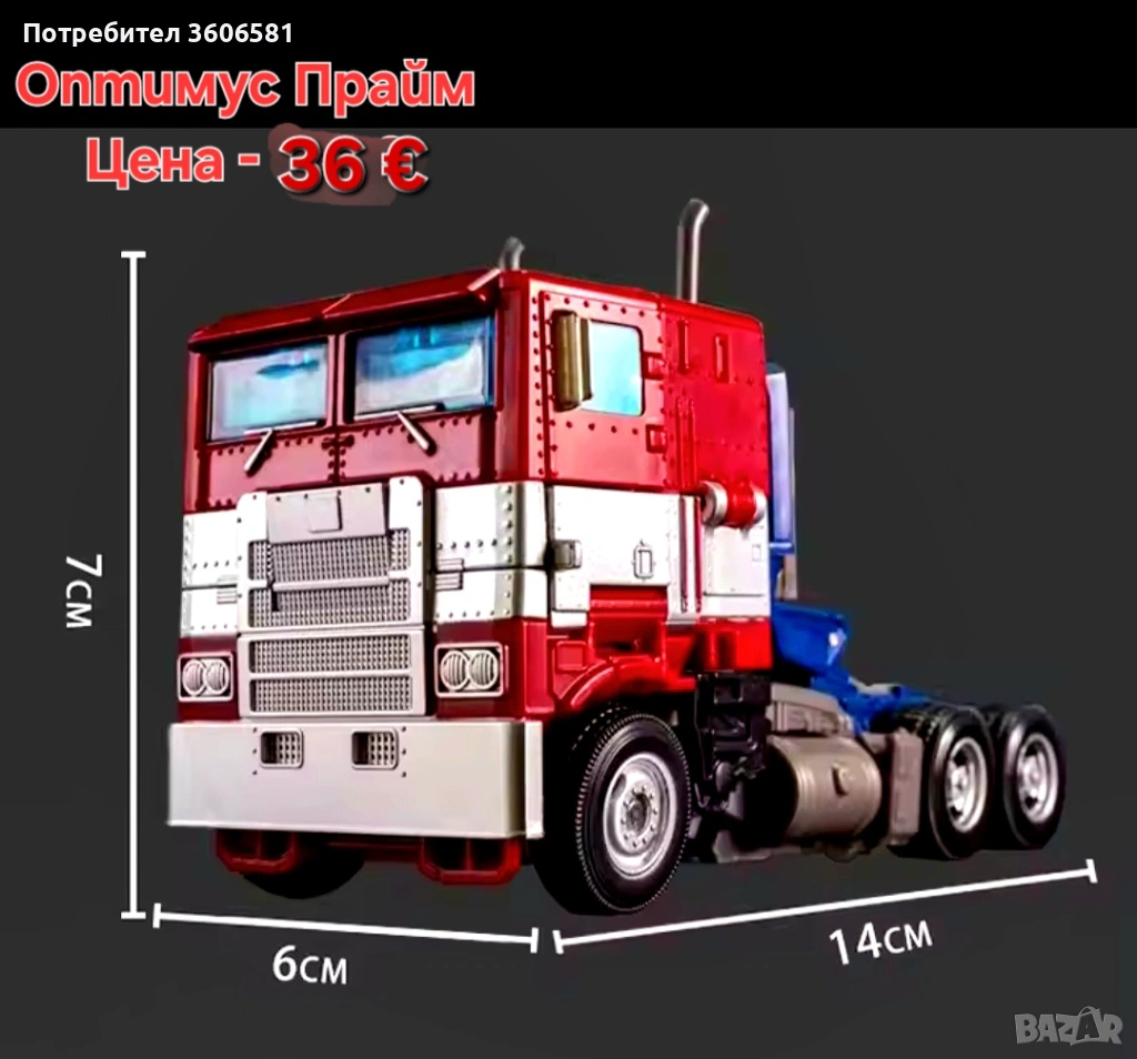 Модел на трансформиращия се Оптимус Прайм от филма Трансформърс / превръщаш се в Робот и във Камион. Съдържа оригинална кутия със модела на Оптимус Прайм .
