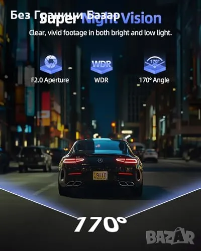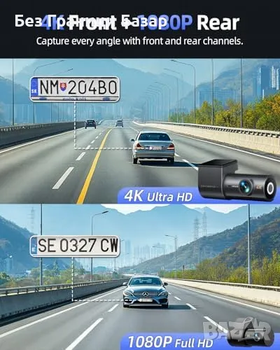 4K Ultra HD предна камера + 1080P задна камера – кристално ясни записи с 170° широкоъгълен обхват
