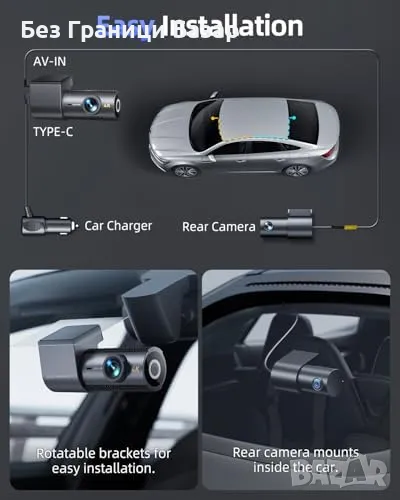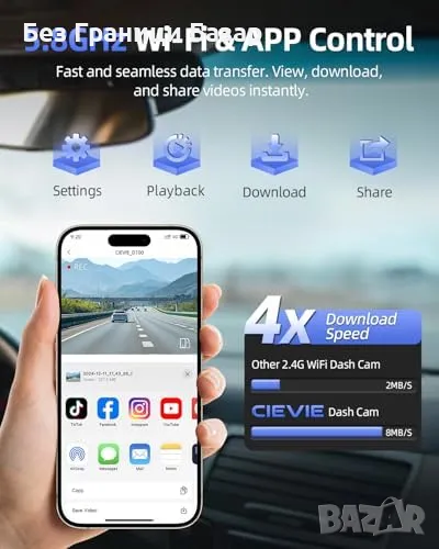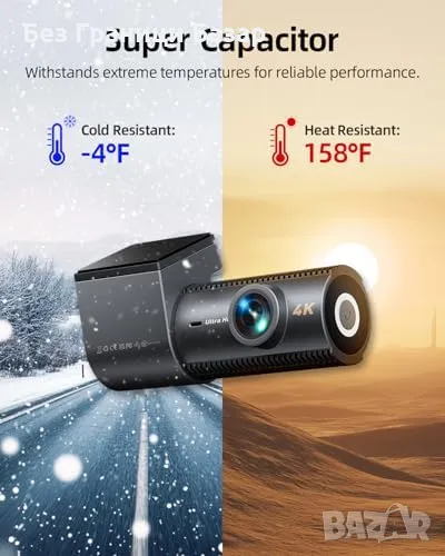 Нов 4K двоен видеорегистратор с 5.8GHz WiFi, нощен режим G-сензор кола