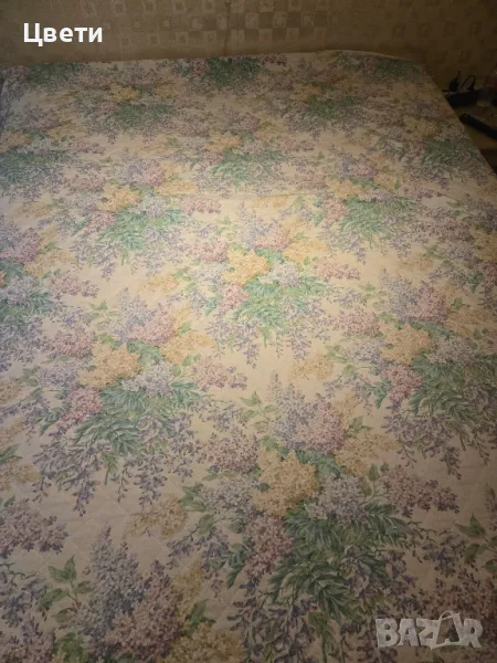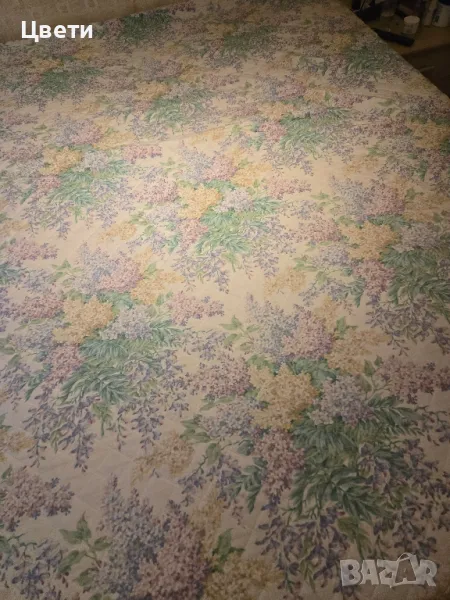 Шалте на дребни цветя/ двулицево/ , кореспондира отлично с пердето 260см./240см размер на покривалото. Цена 30лв на покривалото.