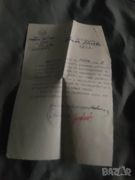 Пощенска карта до Лагера Кръстополе 1944 Гюмюрджина ;Читалищен съюз Стара Загора , Читалище Родина 9 .10.1944;Бележка БДЖ пътуване Стара Загора - Търново Ю.Т.С;12 септември 1944 Стара Загора