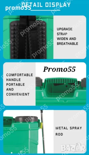 Електрическа пръскачка за лозе и пръскане на овошки, може да се използва за торене, за премахване на трева и плевели с хербицидни препарати както и за дезинфекция на помещения.
