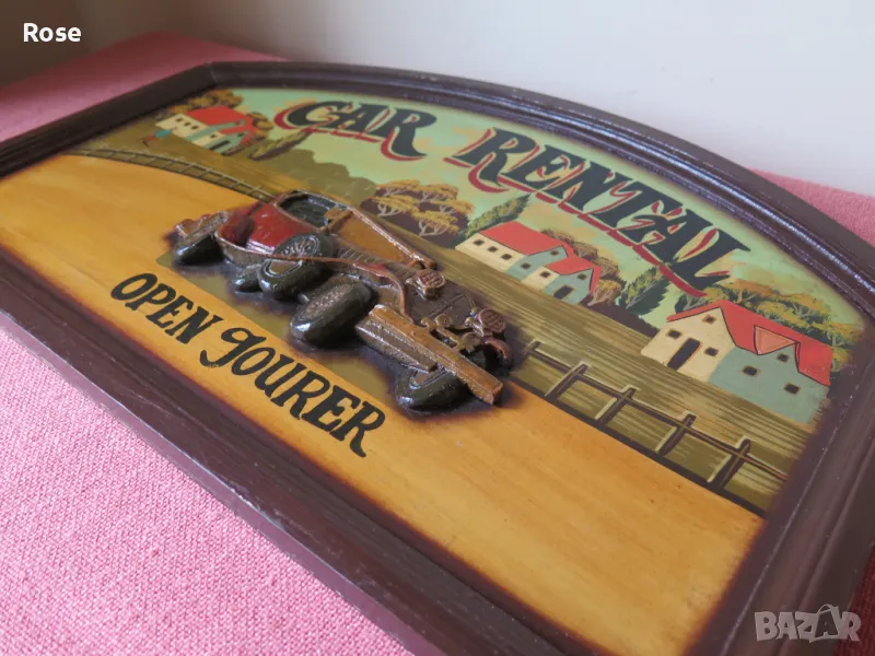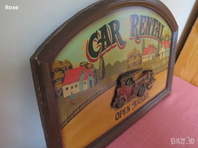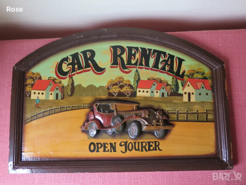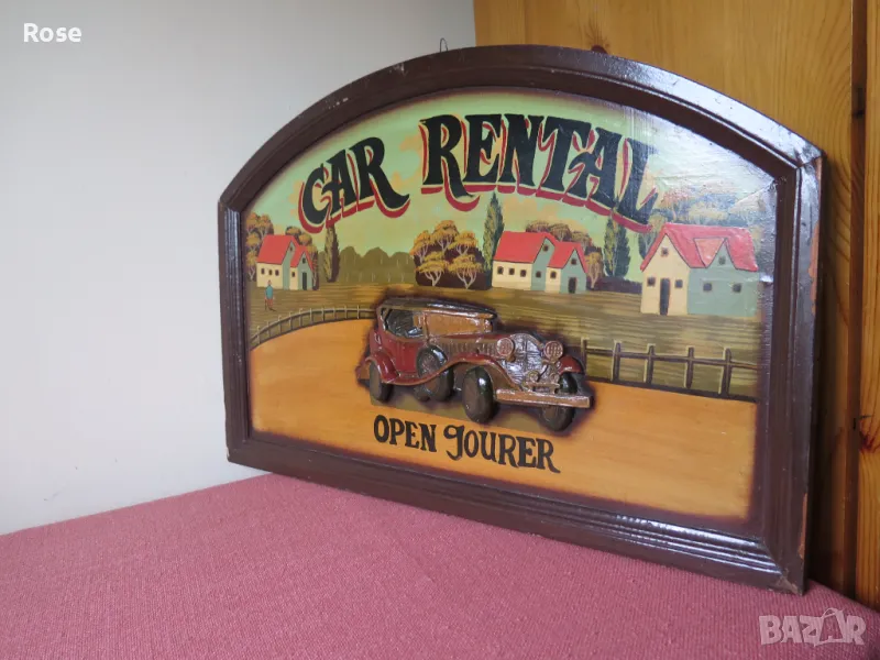 стара картина, Car Rental, релефна,English → Обява 49537940