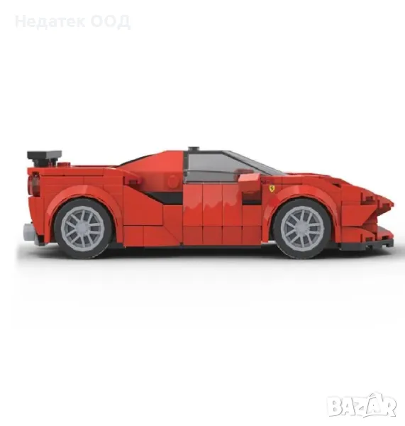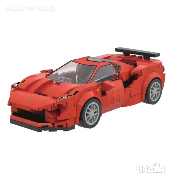 Червени тухли със състезателна кола с размери 15.5x4.5cm. Ниво на трудност 3/5.