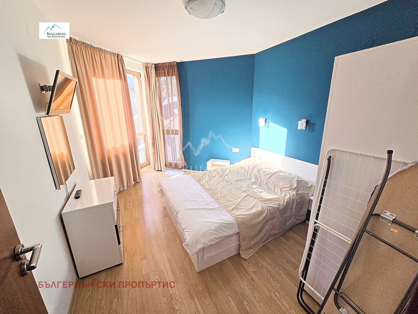 Спалня: двойно легло, нощни шкафчета и гардероб.