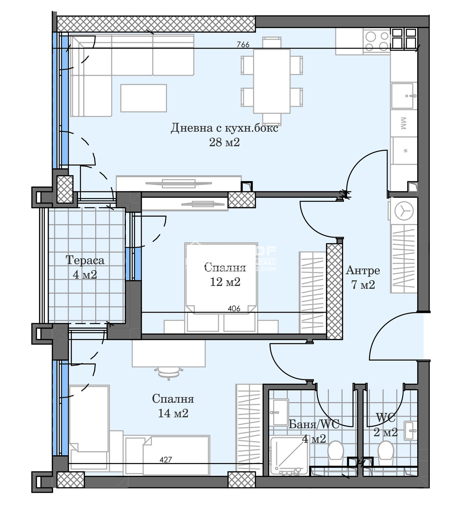 Оферта 66549: Предлагаме Ви възможността да закупите тристаен ИЗЦЯЛО ЮЖЕН апартамент в новоизграждащ се луксозен жилищен комплекс с модерна визия, проектиран да създаде максимален комфорт на живущите в него. Tри хоризонтално разположени жилищни секции с елегантен силует готов да предложи комфорт и модерен начин на живот.Едно от основните му предимства е страхотната локация, отлична комуникативност и динамична пътна инфраструктура, която осигурява бърз и лесен достъп до комплекса, от всяка точка на града. Той съчетава лукс, спокойствие и комфорт, с подсигурени паркоместа и гаражи. Жилището се състои от СЛЪНЧЕВА дневна 28 кв.м с кухненска част и трапезария, две самостоятелни спални, баня с тоалетна, втора тоалетна, широк коридор с място за гардероб и перално и една тераса обща за трите стаи. Основната концепция при проектирането е да се постигнат просторни и функционални стаи, с цел да се създаде максимален уют на модерното семейство. Изключителна съвременна архитектура и модерна технология на строителство. Визията е иновативна, привличаща внимание с уникалността си. Всяко жилище ще разполага с пълно окабеляване за домофон, интернет и кабелна телевизия, общите части са луксозно завършени, жилищата са с алуминиева дограма с троен стъклопакет от най-висок клас, масивна блиндирана входна врата. За удобство на живущите съществува възможността да закупят подземни паркоместа и гаражи с топла връзка към комплекса. Гъвкави схеми на разсрочено плащане спрямо възможностите на клиента в рамките на строителството или закупуване чрез Банков Кредит, на изключително изгодни условия за клиенти на агенцията !!!ВИЖТЕ ОЩЕ ИЗГОДНИ ОФЕРТИ НА https://www.kondorimoti.com/ С ЕЖЕДНЕВНА АКТУАЛИЗАЦИЯ!