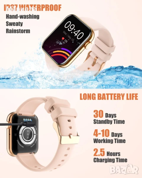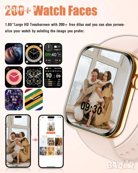 Дамски Смарт часовник 1,85-инчов дисплей / HD извит екран, монитор за сърдечен ритъм/сън