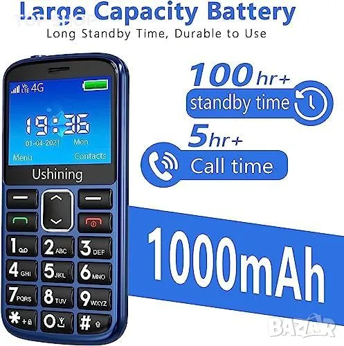 Дълготрайна батерия: 1000 mAh, до 300 минути разговори или 200 часа в готовност.