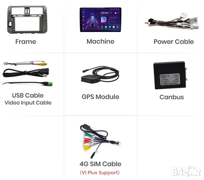 Пълен комплект с цялата рамка, преходни кабели и букси, декодери, предназначени и съвместими за монтиране на конкретния модел автомобил.