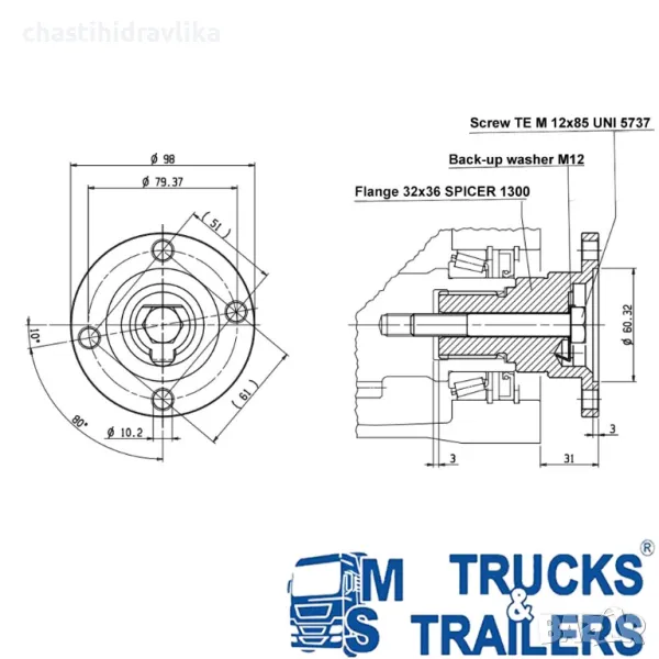 Фланец за кардан Ø98мм - 4 отвора 11400001105, снимка 1 - Части - 49540292 Фланец за кардан Ø98мм - 4 отвора 11400001105, снимка 2 - Части - 49540292 1/2