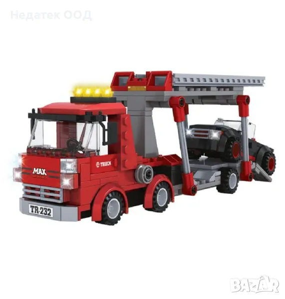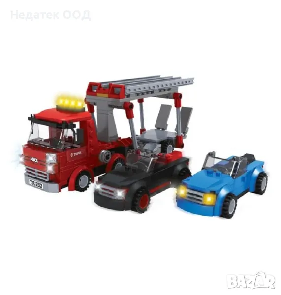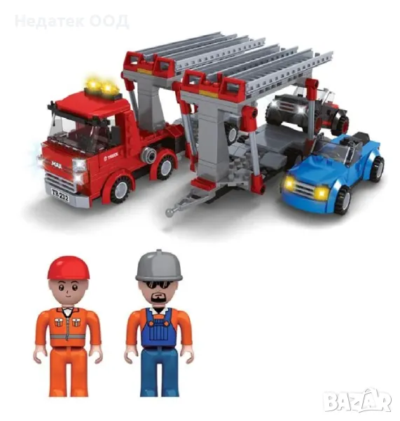 Тухли камион с превозни средства и 2 фигурки. Ниво на трудност 3/5.