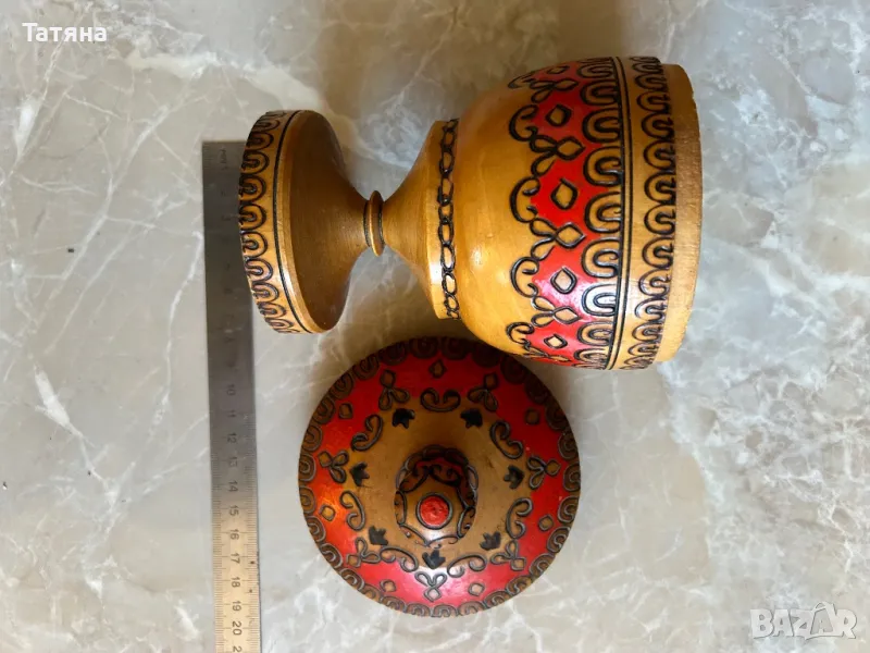 Кутия за бижута от дърво форма на чаша винтидж → Обява 49540352