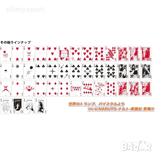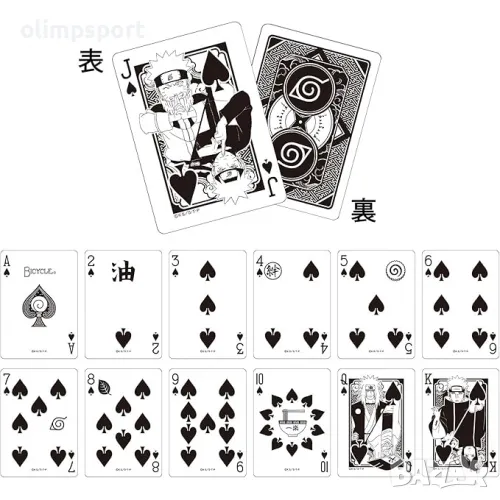 Персонализирани гърбове на карти, подчертаващи символа Leaf Village, и картинни карти, пълни с изкуство на десетки от най-легендарните герои в света на Shinobi. Картинните карти включват Наруто, Сусуке, Сакура, Какаши, Джирая, Пейн и много други!