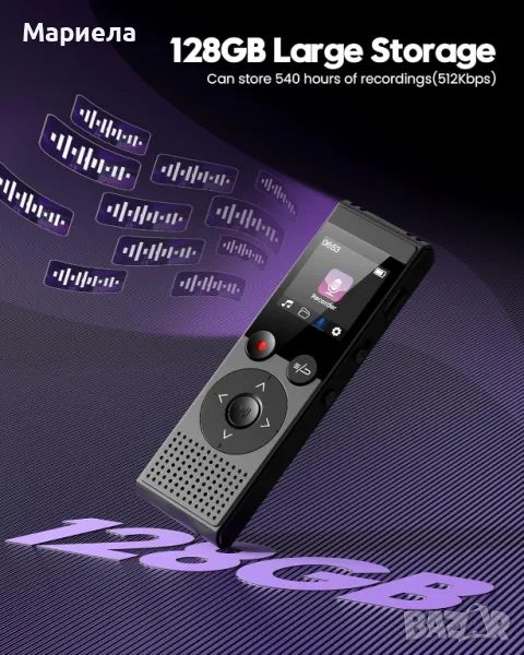 128GB Цифров диктофон / Възпроизвеждане с двоен микрофон 3072Kbps AB / Намаляване на шума