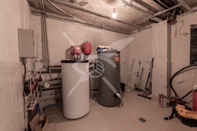 Първи етаж- гараж, котелно, голям склад и баня/гардеробна