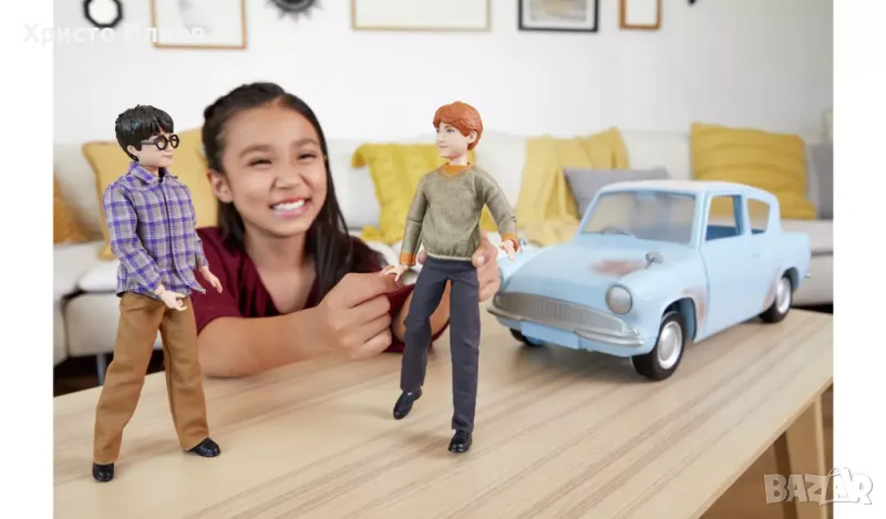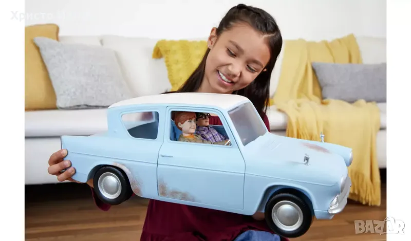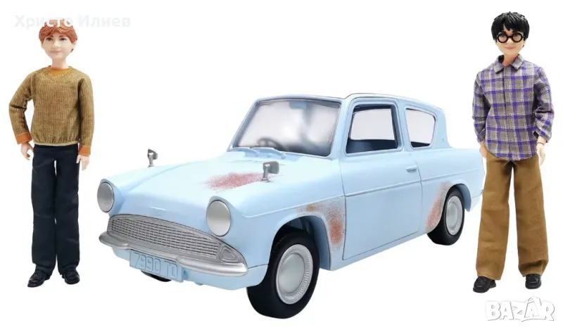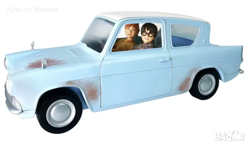 Пътувайте до Хогуортс с две вдъхновени от филма кукли Хари Потър и тяхната невероятна летяща кола! Феновете и колекционерите могат да преживеят отново емблематичен момент от филма с този колекционерски комплект, включващ Хари, Рон и реплика на емблематичния автомобил Ford Anglia, включващ вярна на филма скулптура и реалистични детайли, като метална решетка и джанти и декорация от ръжда. Идеална за показване или игра, летящата кола разполага с работещи врати и седалки за двете кукли. Поставете Хари и Рон вътре, за да се повозите - но бъдете предупредени, усилвателят на невидимостта е дефектен!