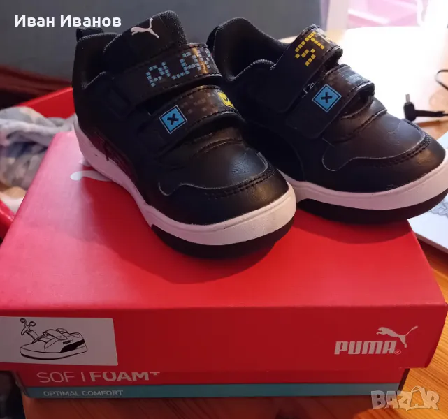 Чисто нови оригинални детски маратонки Puma - номер 22. Обувани са веднъж. Всички етикети, серийни номера и Q-ар кодове са налични. Последната снимка съм показал цената на която съм ги закупил. Объркан номер, който видяхме малко по-късно(изтървахме срока за връщане).