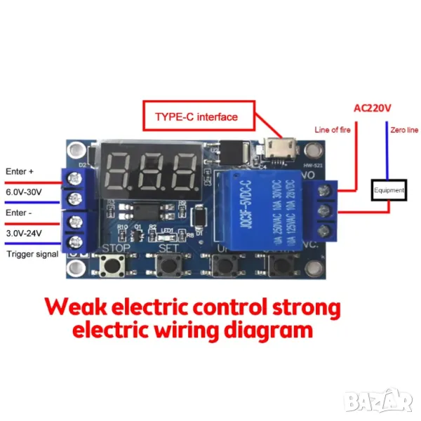 - Изходен капацитет: 30VDC или 250VAC 10A.