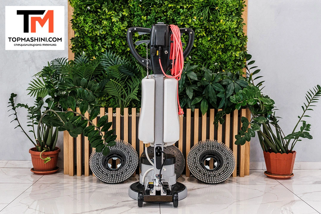 Универсална чисто нова еднодискова машина за професионално почистване и полиране на твърди и меки подови настилки CleanTrack CT 17. Машината се използва както за почистване, така и за полиране на силно замърсени настилки. Мощност 1200W Захранване 220V Тегло 45кг Дължина на захранващия кабел 12м Контейнер за вода 10л Обороти 154rpm Година на производство 2023г Комплекта включва мека и твърда четка, както и пад за почистване на под. Гаранция 1 година