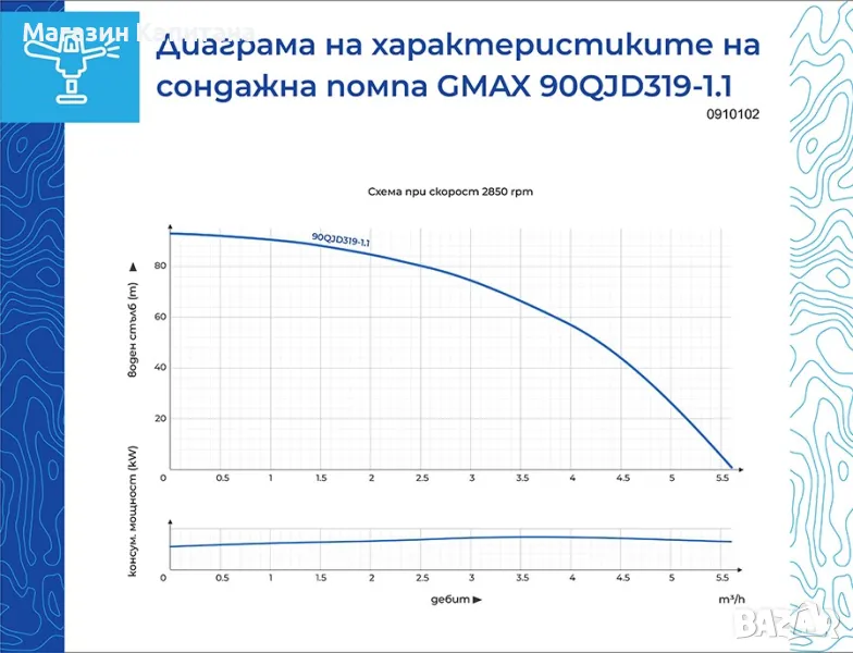 Сондажна водна помпа Gmax 5,6m3/ч, макс. дълбоч. 60м. воден стълб 93м.