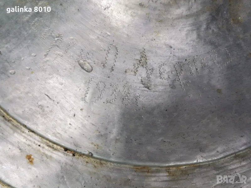 Стара здрава бакърена тенжера с капак от 1938 година, надписана с горен диаметър 32 см.