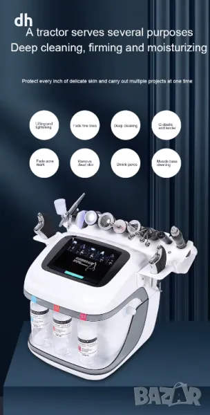 Зарадвайте вашите клиенти с многофункционални процедури и терапии! Дайте свобода на дейността си с един уред, който предлага множество функции. Бъдете креативни и следвайте желанията на пазара. Продавам професионален козметичен апарат за лице "Аква Пилинг" с 10 накрайника:
