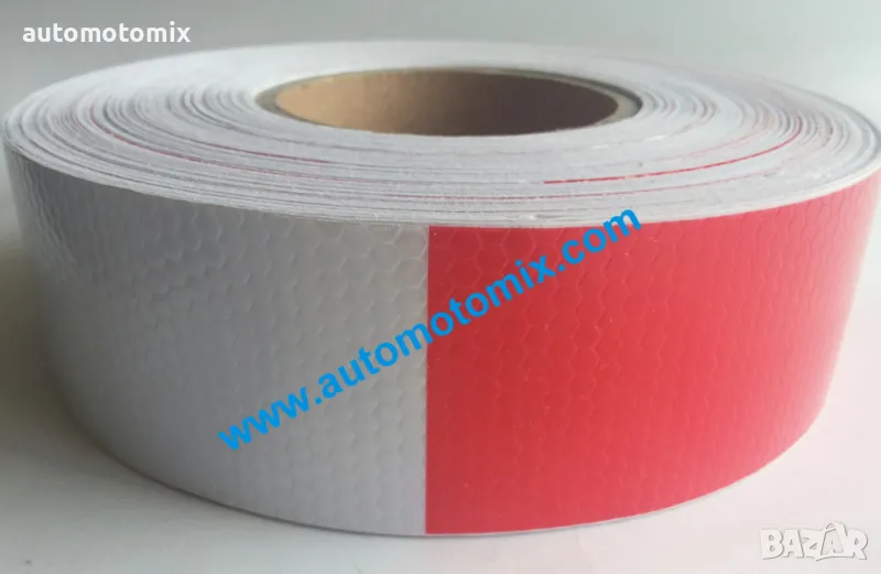 СВЕТЛООТРАЗИТЕЛНО ТИКСО -ЧЕРВЕНО/БЯЛ 25М.х 5см Цвят: Червено /Бял Тиксо (тип: пчела) армирано с полиетилен и полиестерна тъкан. Тиксото е адаптивно към разнообразни повърхности, водоустойчиво. Широчина: 50мм. Дължина: 25 метра. Тиксото е издражливо и на неблагоприятни климатични условия, влага и ниски температури. Лесно е за употреба и не се отлепя при полагане