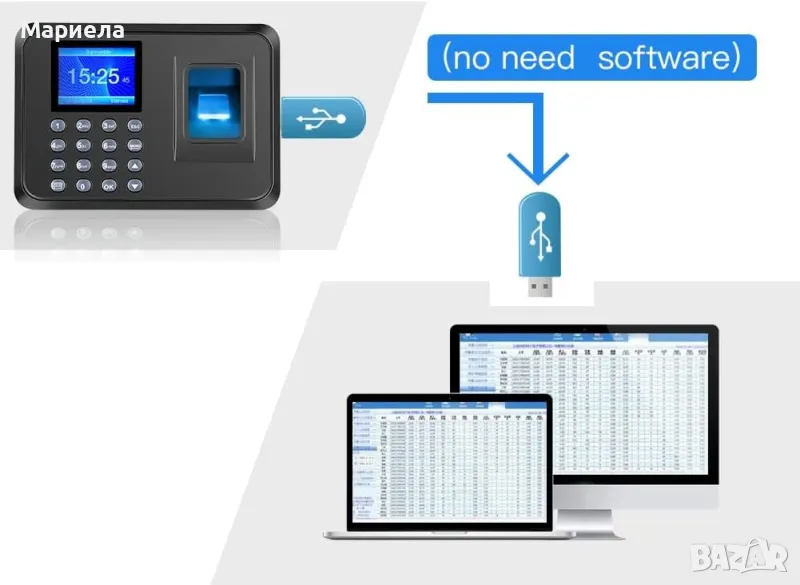 USB флаш диск за изтегляне на отчети за присъствие в Excel & Безплатна инсталация на друг софтуер.