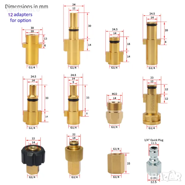 - **Свързване:** G1/4” M, адаптер за конкретна машина