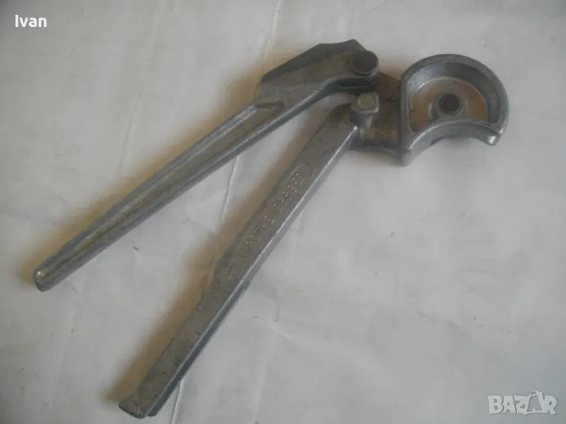 Почти нов, алуминиев изцяло, ръчен тръбогиб на Ротенбергер ръчен уред за огъване на тръби размер диаметър до ф12 мм. Марка Rothenberger.Производство не е упоменато. Радиус на огъване R 35. Дължина на инструмента - 32,5 см, ширина 14 см. Тегло 0,8 кг. Цена 159 лв.