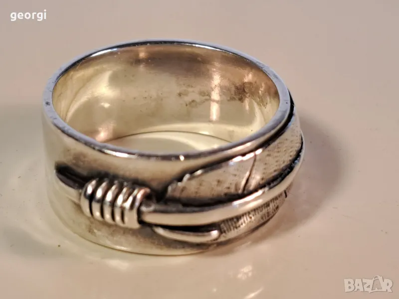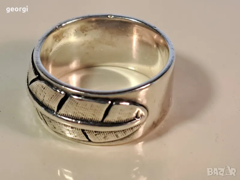мъжки сребърен пръстен халка Перо