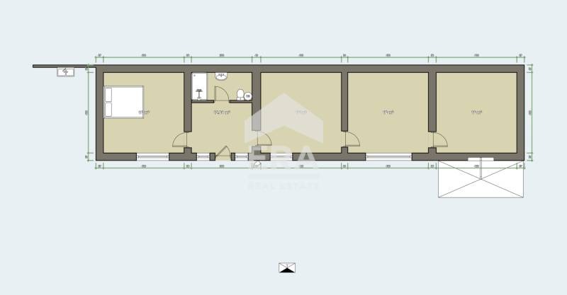 ЕРА Вива предлага едноетажна къща с разгъната застроена площ от 80 кв.м, разположена в равен и поддържан двор от 1300 кв.м в село Неофит Рилски, област Варна. Имотът включва завършени коридор, баня с тоалетна и една спалня, докато дневната с кухненски кът и двете допълнителни спални са подготвени за измазване и довършване. В двора е изградена малка външна кухня, а съществува и възможност за обособяване на самостоятелна постройка тип механа . Масивният гараж с площ 96 кв.м позволява бизнес дейности като автосервиз или автоморга, а пред него и вътре в двора има място за паркиране на около десет автомобила. Дворът е ограден с висока над три метра масивна стоманена ограда и метални врати, осигуряващи пълно уединение и спокойствие. Равният терен позволява обособяване на зони за отдих, детска площадка, басейн, овощна градина или зеленчуков кът. Имотът е оборудван с ток, вода и интернет, готов за целогодишно живеене.
