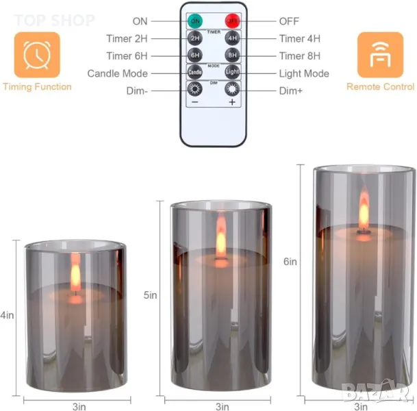 Evglim LED безпламъчни мигащи свещи, дистанционно, Комплект от 3 x H4''/5''/6''
