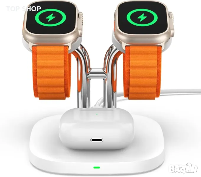 - Двойна стойка за Apple Watch за едновременно зареждане на два часовника