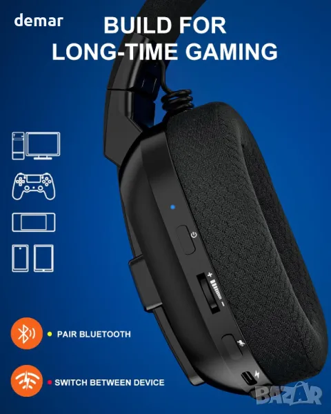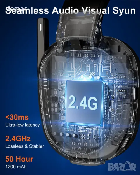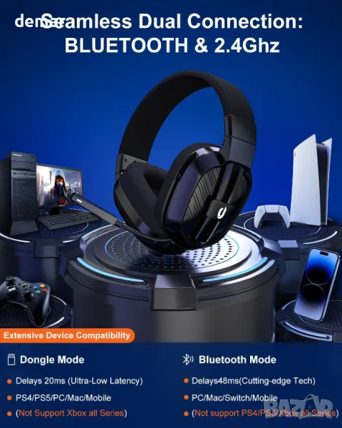 Тези безжични слушалки за игри разполагат с 50 мм драйвери и 2,4 GHz безжична безжична технология за потапящ, ясен стерео звук с минимално забавяне. Той предлага двойна свързаност със стабилна 2,4 GHz връзка за PC и PS4/5 игри, докато Bluetooth режимът гарантира съвместимост с телефони, лаптопи и Switch. Проектиран за дълги сесии, той осигурява над 50 часа живот на батерията и лек комфорт с дишащи възглавнички за уши от мемори пяна. Всепосочният микрофон за намаляване на шума подобрява екипната комуникация чрез филтриране на фоновия шум. Поддръжката на различни платформи включва PS5, PC, PS4, Switch, Mac и смарт устройства, въпреки че не е съвместима с Xbox Series и микрофонът не функционира на Switch.