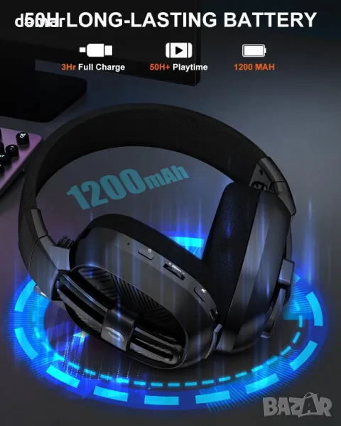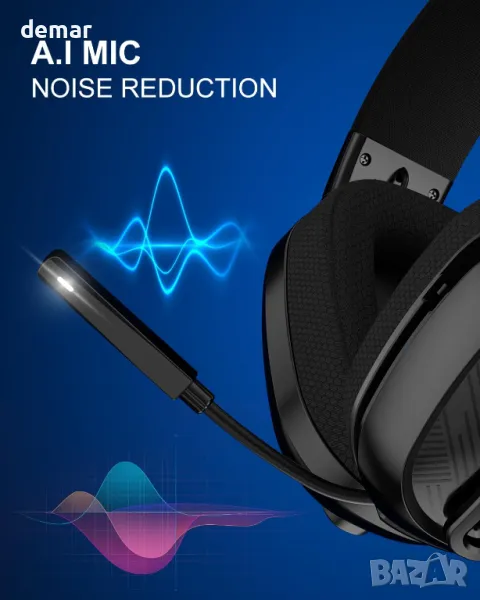 JIMYIU Безжични слушалки за игри с шумопотискащ микрофон, 2,4 GHz и Bluetooth, 50 часа батерия