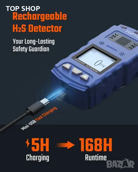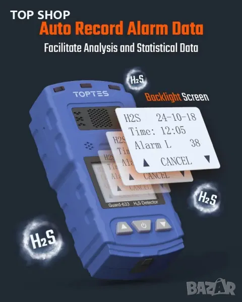 TOPTES Guard-633 H2S детектор, H2S монитор с щипка с прецизен газов сензор, 0,5 сек бърза реакция