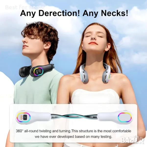 【Вентилатор за врата със свободни ръце】 Вентилатор за врата със свободни ръце освобождава ръцете ви навсякъде. Модният стил ви кара да изглеждате страхотно и можете да го носите навсякъде в горещо време, като работа на открито, офис, косене на трева, градинарство, разходка с количка, разходка за свободното време, шофиране, пътуване, къмпинг, риболов и др.
