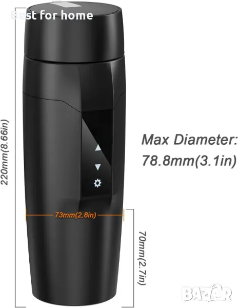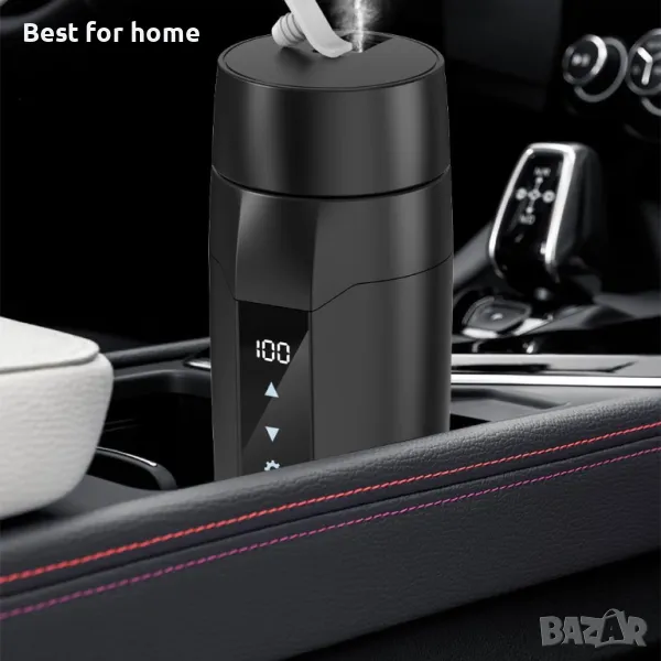 чайник за кола се отличава с красив рационализиран дизайн, стилен външен вид. PC пластмасов материал за храна (БЕЗ BPA) и вътрешна обвивка от неръждаема стомана 304, за да се гарантира безопасността на питейната вода. Отопляемата чаша за пътуване използва непропусклив дизайн, може да се носи! Силиконовата тапа трябва да се отваря при нагряване.【🅟🅛🅤🅖 🅘🅝 🅒🅤🅟】