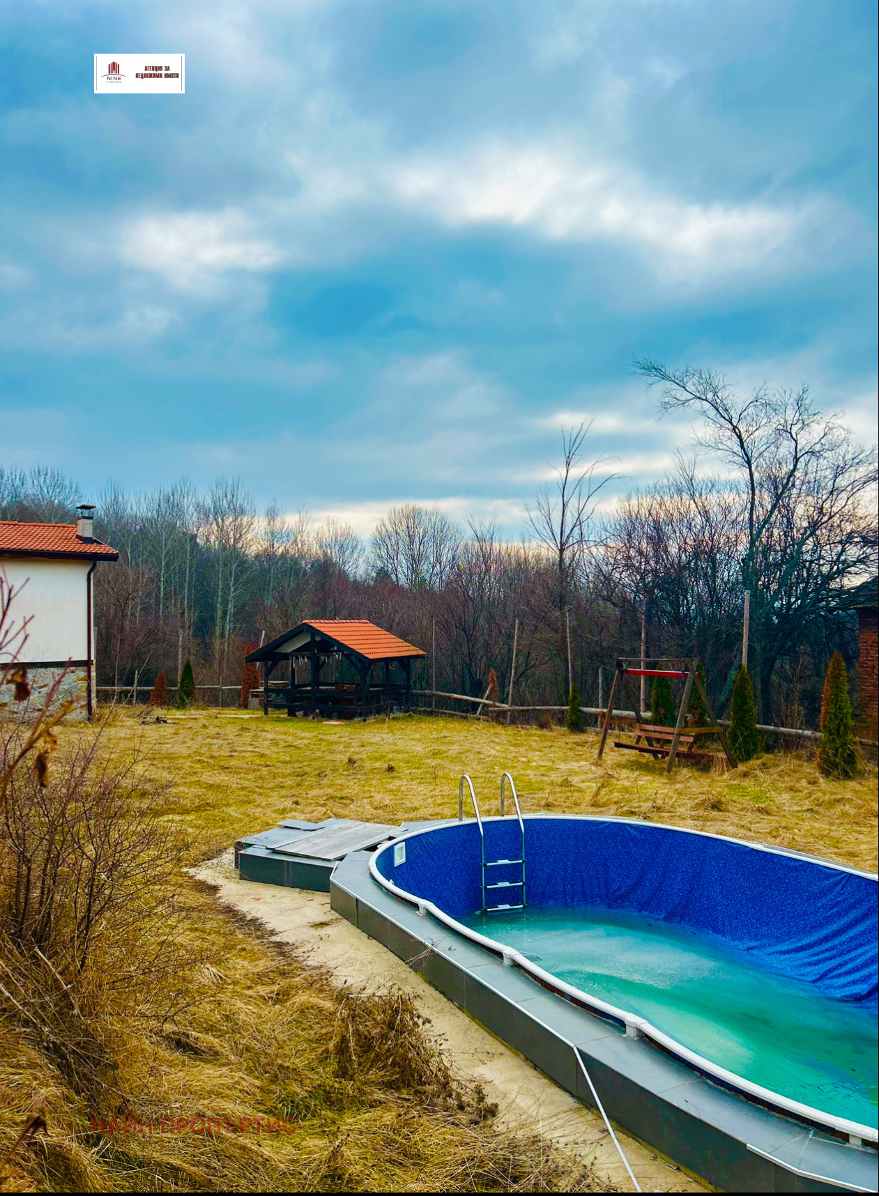 В имота има допълнително две беседки, барбекю зона и басейн.