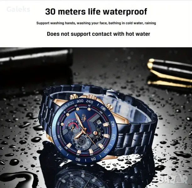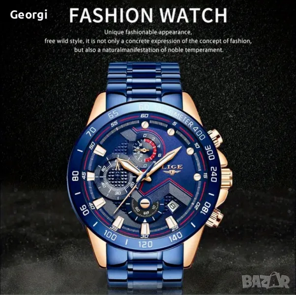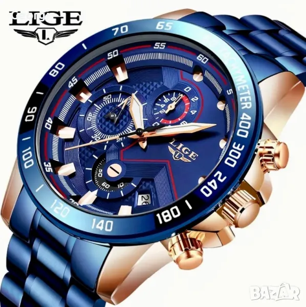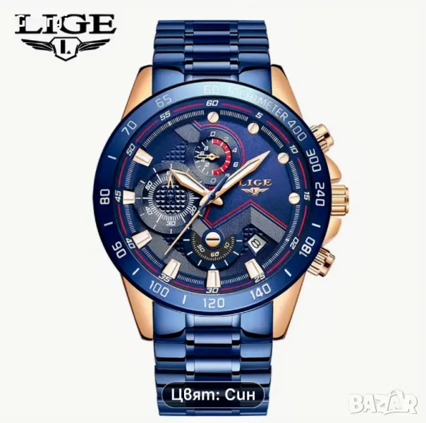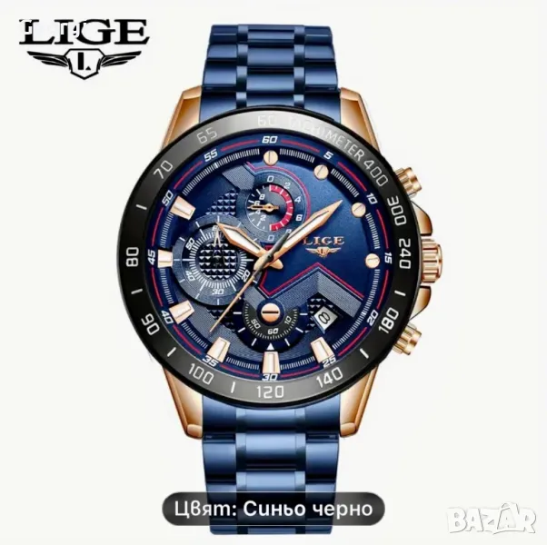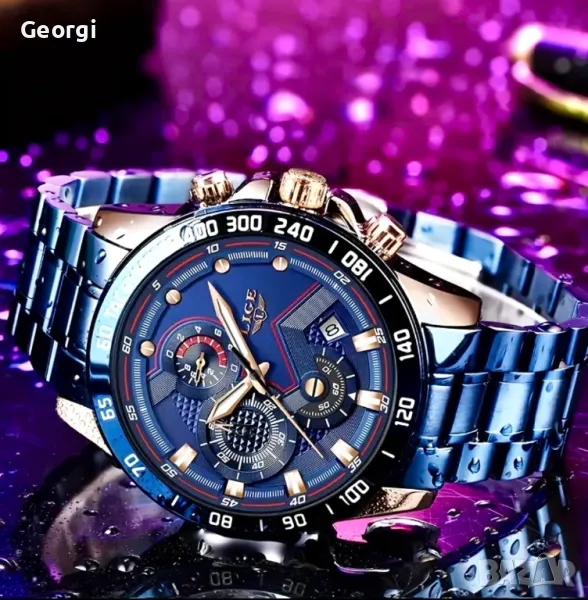 Мъжки спортно/елегантни кварцови хронографи LIGE *Blue/Black* Titanium !